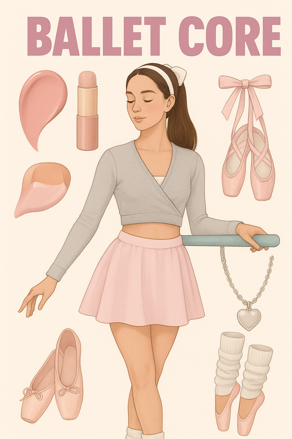Zapatos de ballet: Las zapatillas de ballet, especialmente las de tipo ballet flats o puntas (aunque estas últimas más en el mundo de la danza profesional), se han integrado como parte del look general del balletcore.
